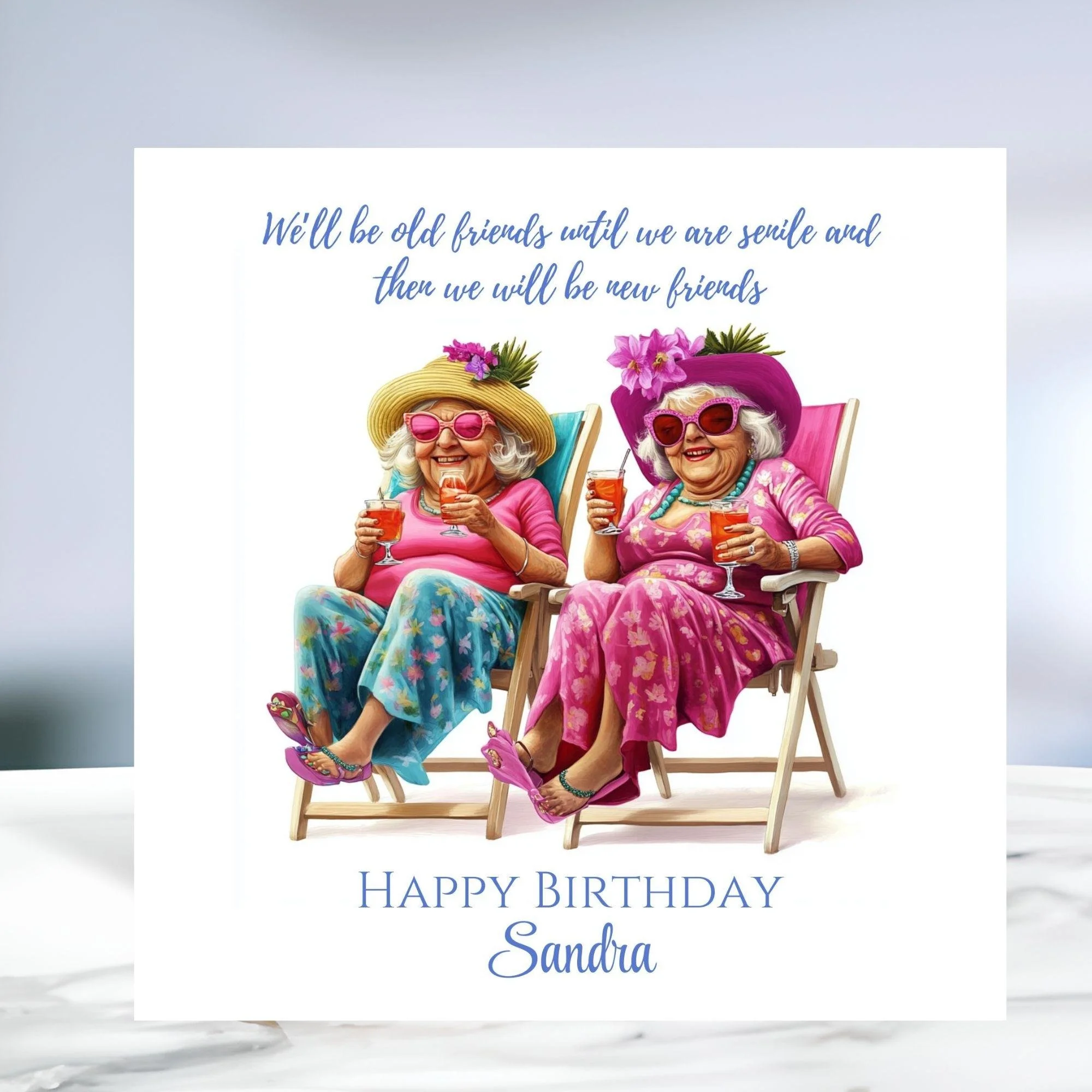 Funny Old Ladies Birthday Card: Besties in Deckchairs - Personalised