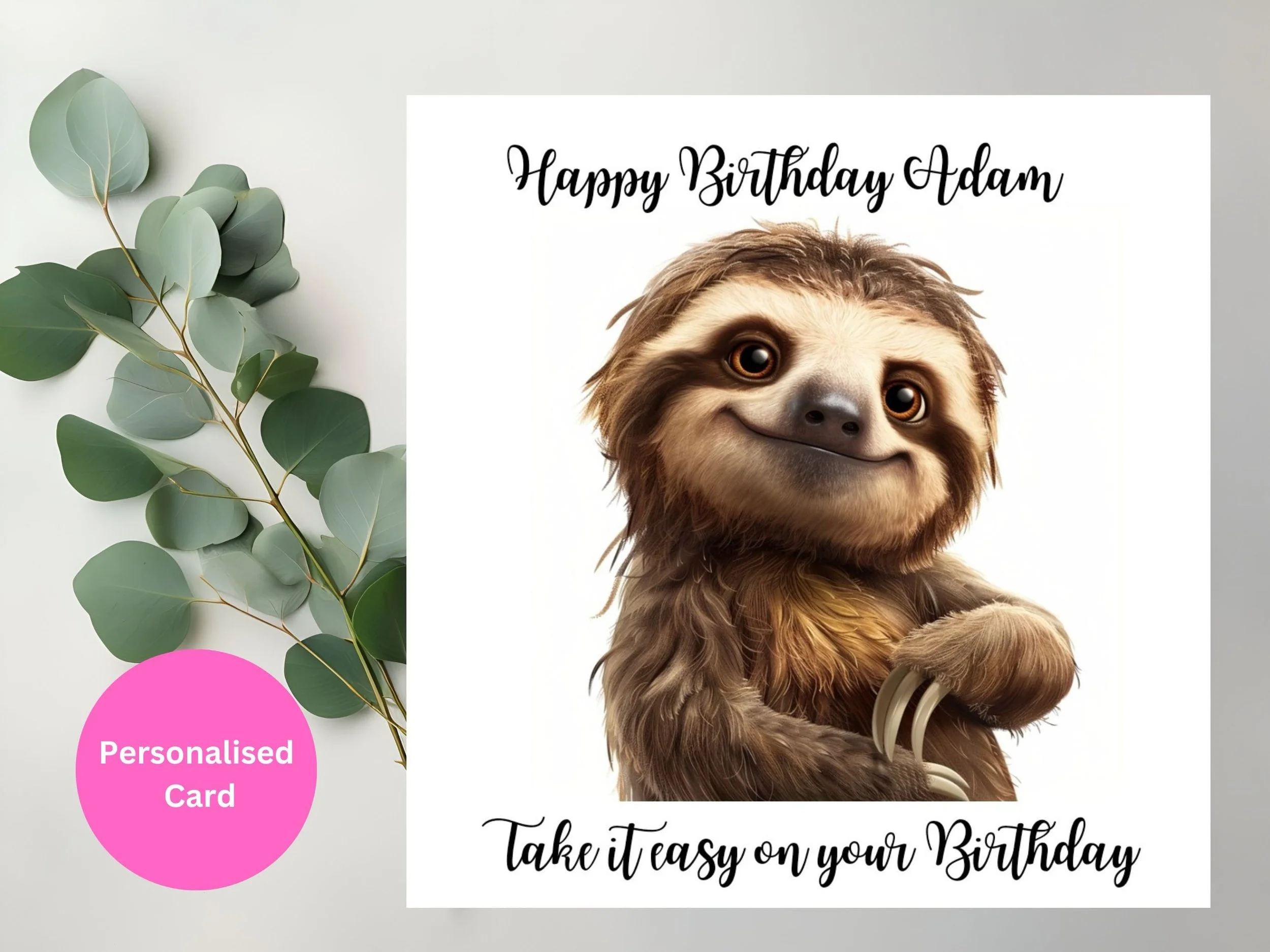 Personalised Birthday Card - Cute Sloth Birthday Card - Relation Birthday - Friend Birthday - Age card- Card for Animal Lover- Take it Easy