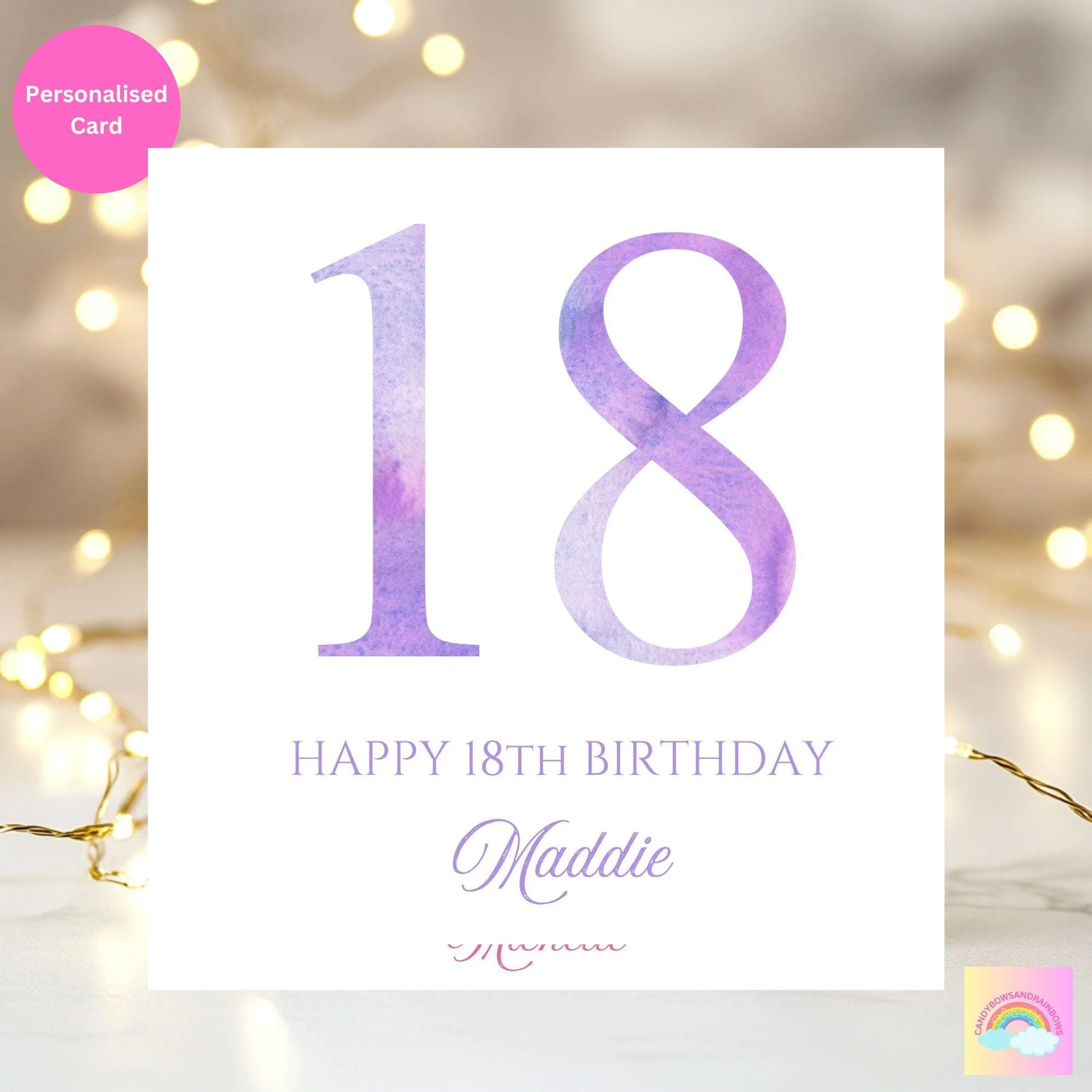 Personalized 18th Birthday Card: Purple Watercolor Design
