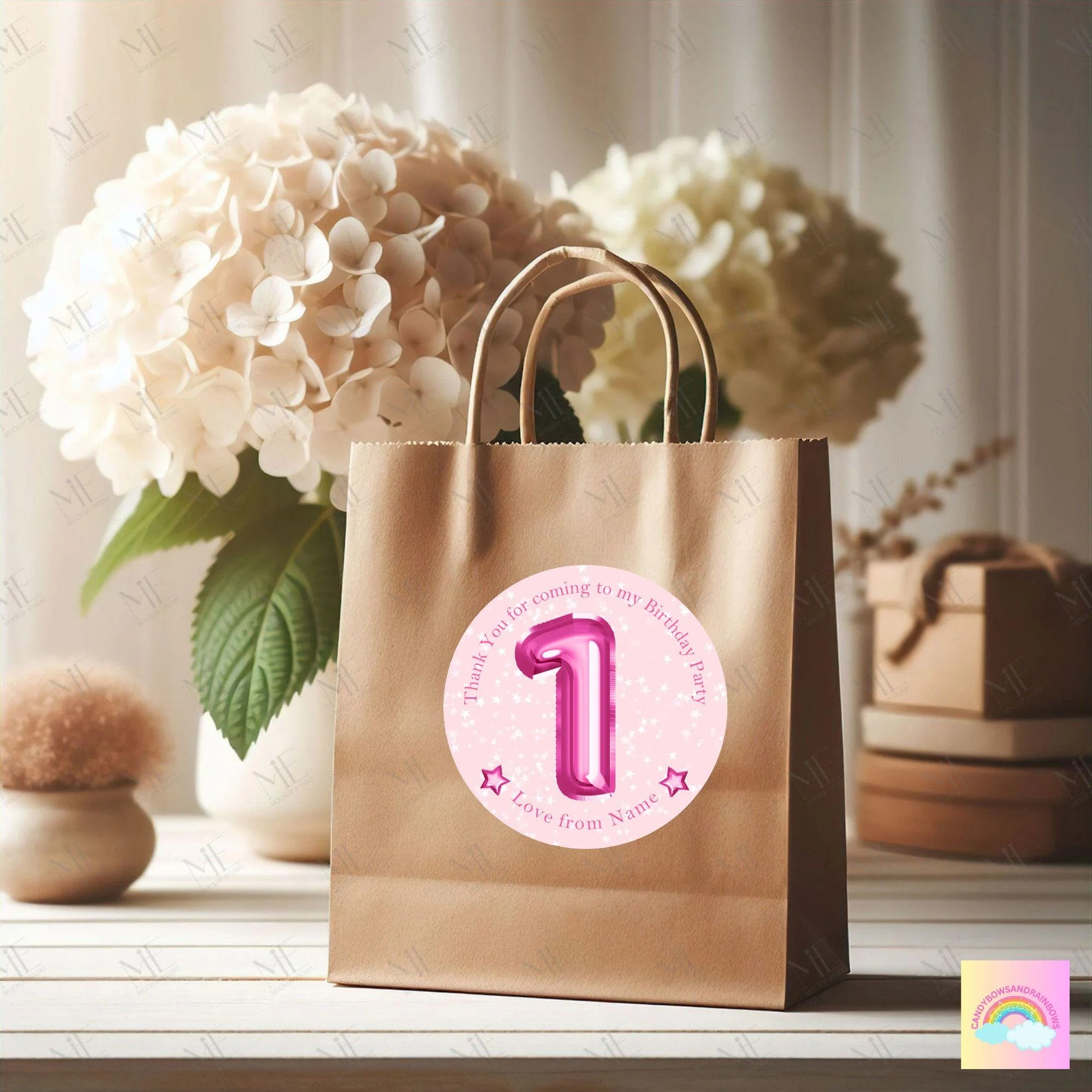 Personalized 1st Birthday Stickers: Pink Balloon Party Favor Labels