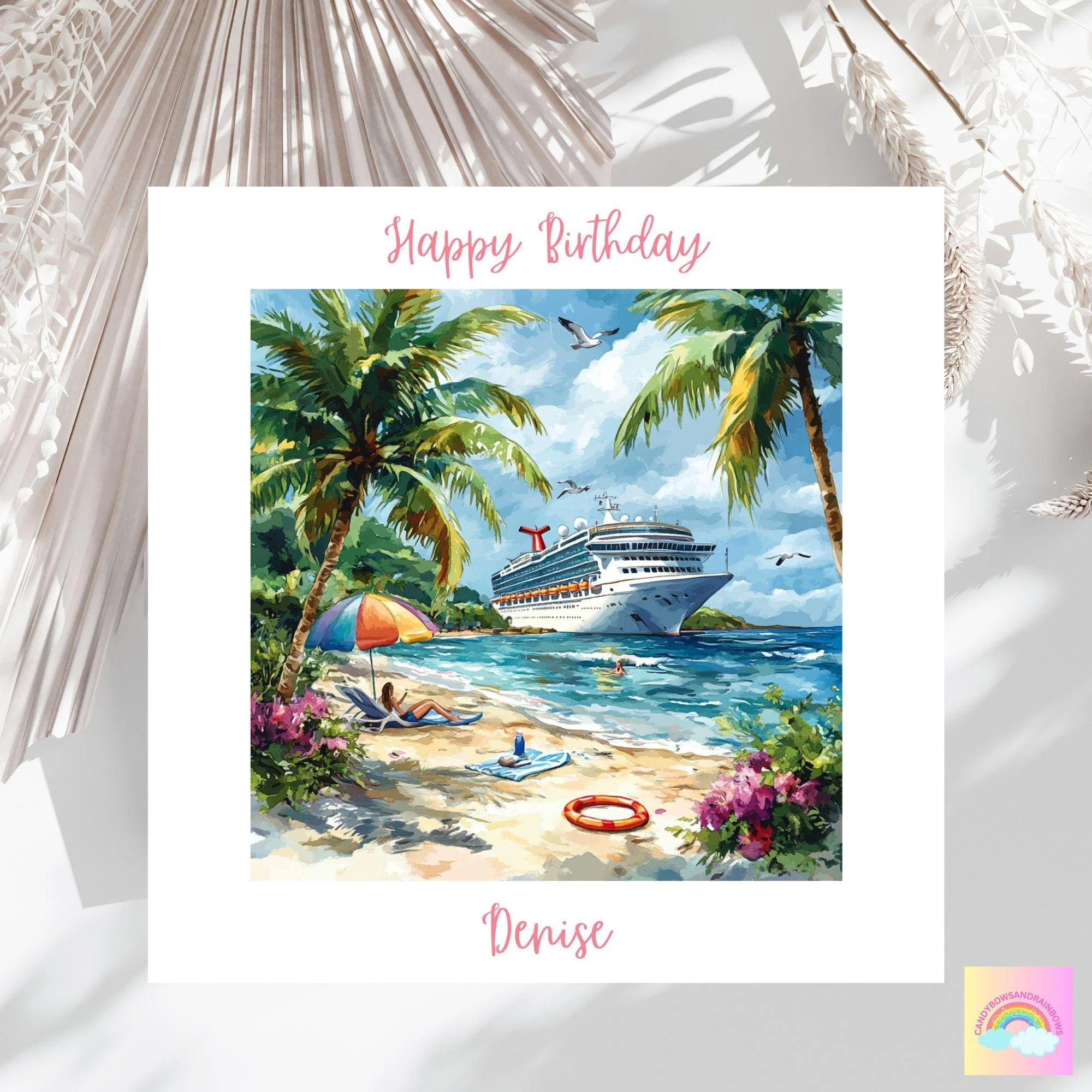 Personalized Cruise Ship Birthday Card: Tropical Holiday
