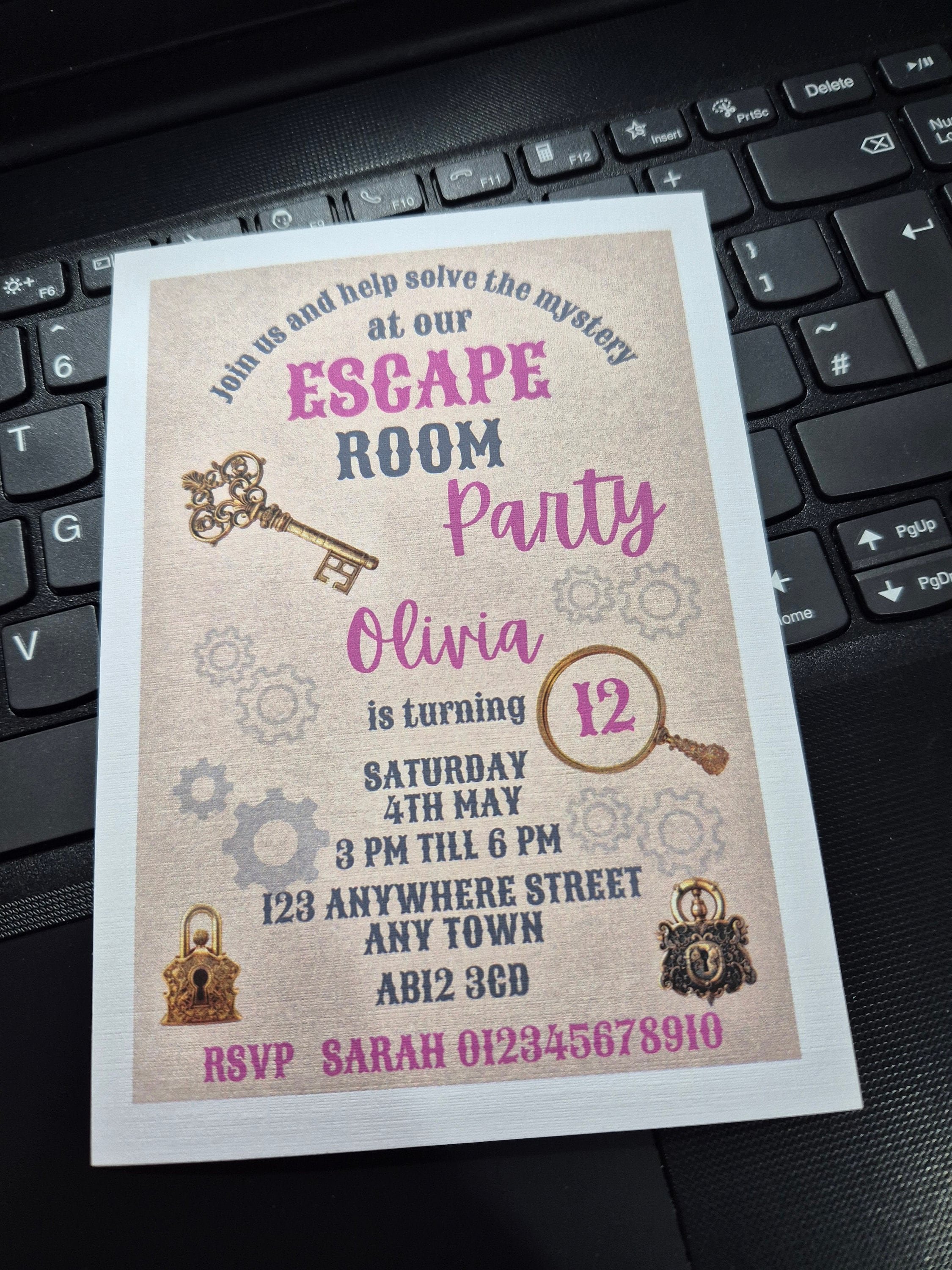 Personalized Escape Room Birthday Party Invitations (Printed)