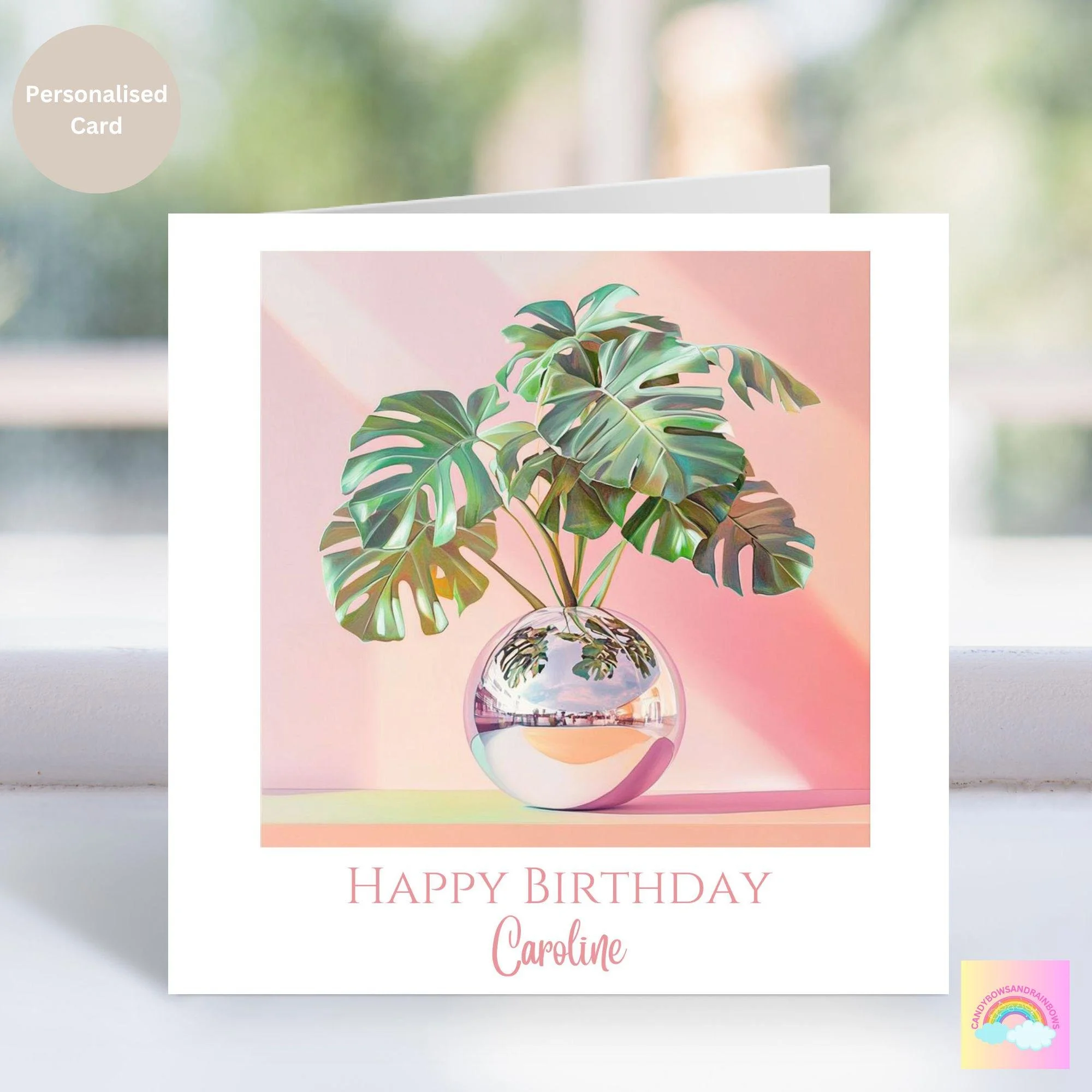 Personalized Monstera Birthday Card: Disco Ball Planter, Custom Age & Name