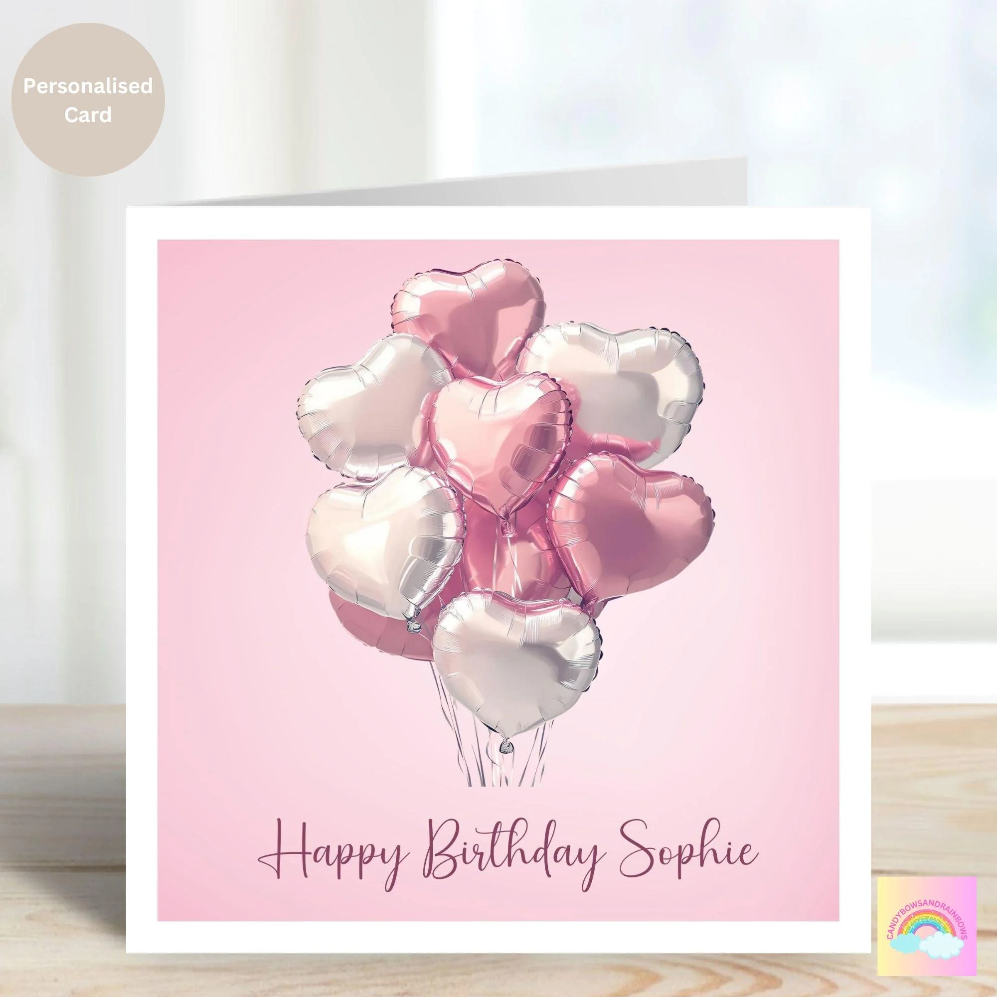Personalized Pink Balloons Birthday Card - Custom Age & Relation