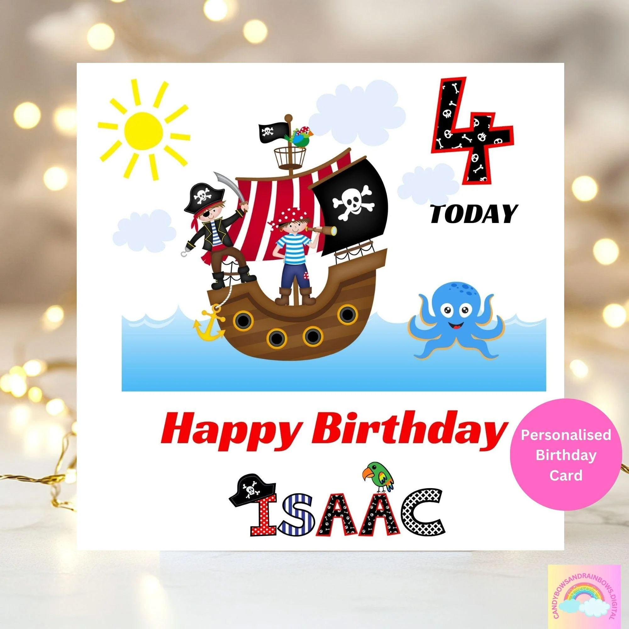 Personalized Pirate Birthday Card: Cartoon Ship, Any Age
