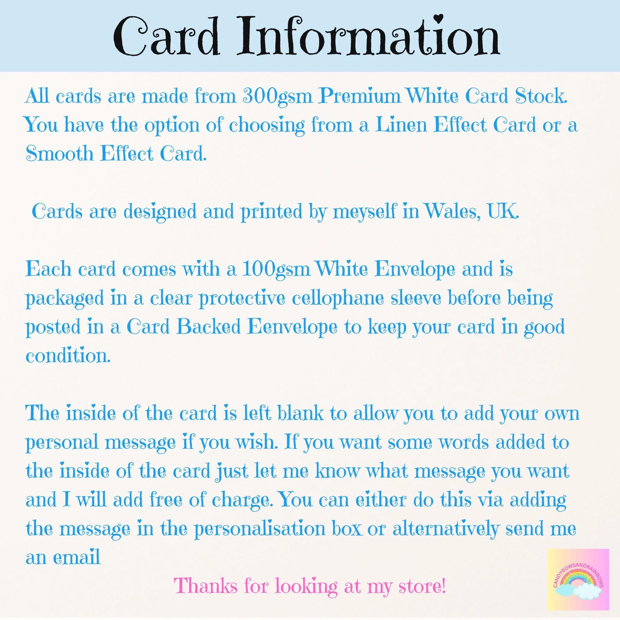 * Card comes with a white 100gsm quality envelope.