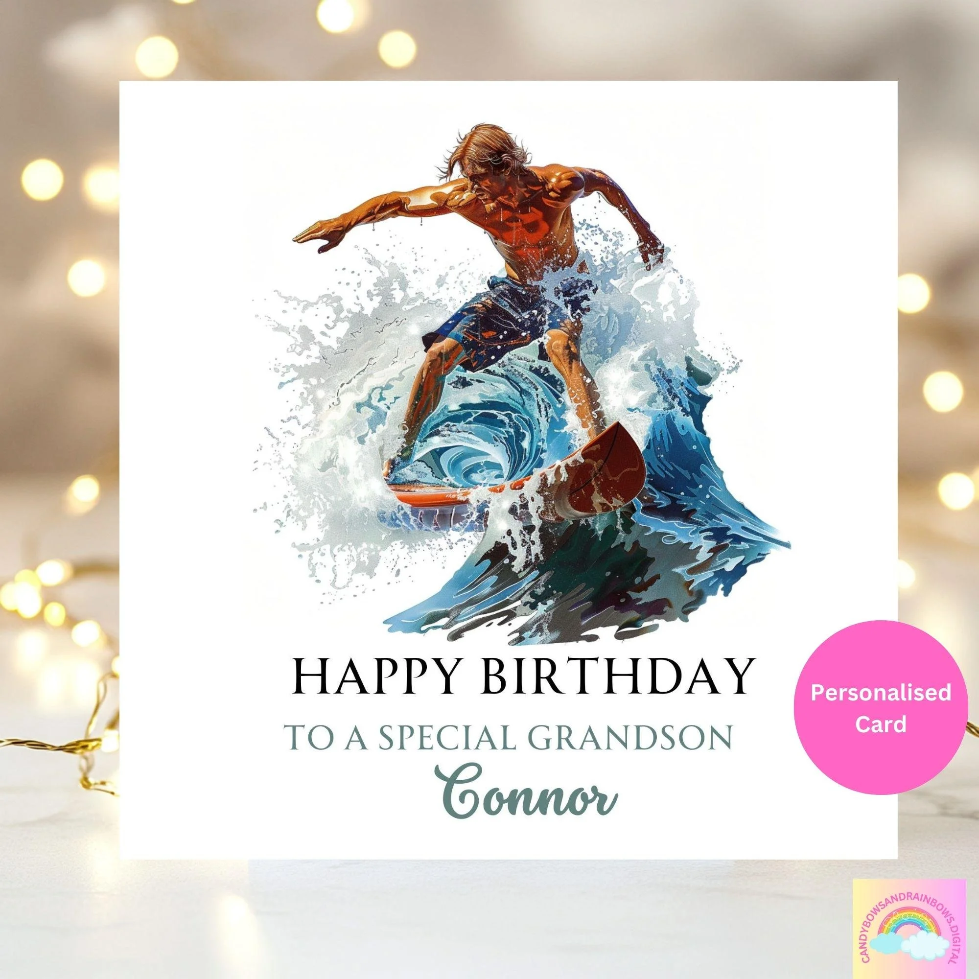 Personalized Surfer Birthday Card: Ocean Waves Design