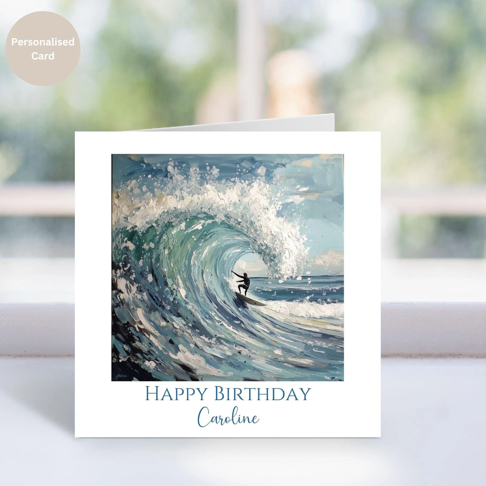 Personalized Surfer Birthday Card: Riding the Waves Greeting Card
