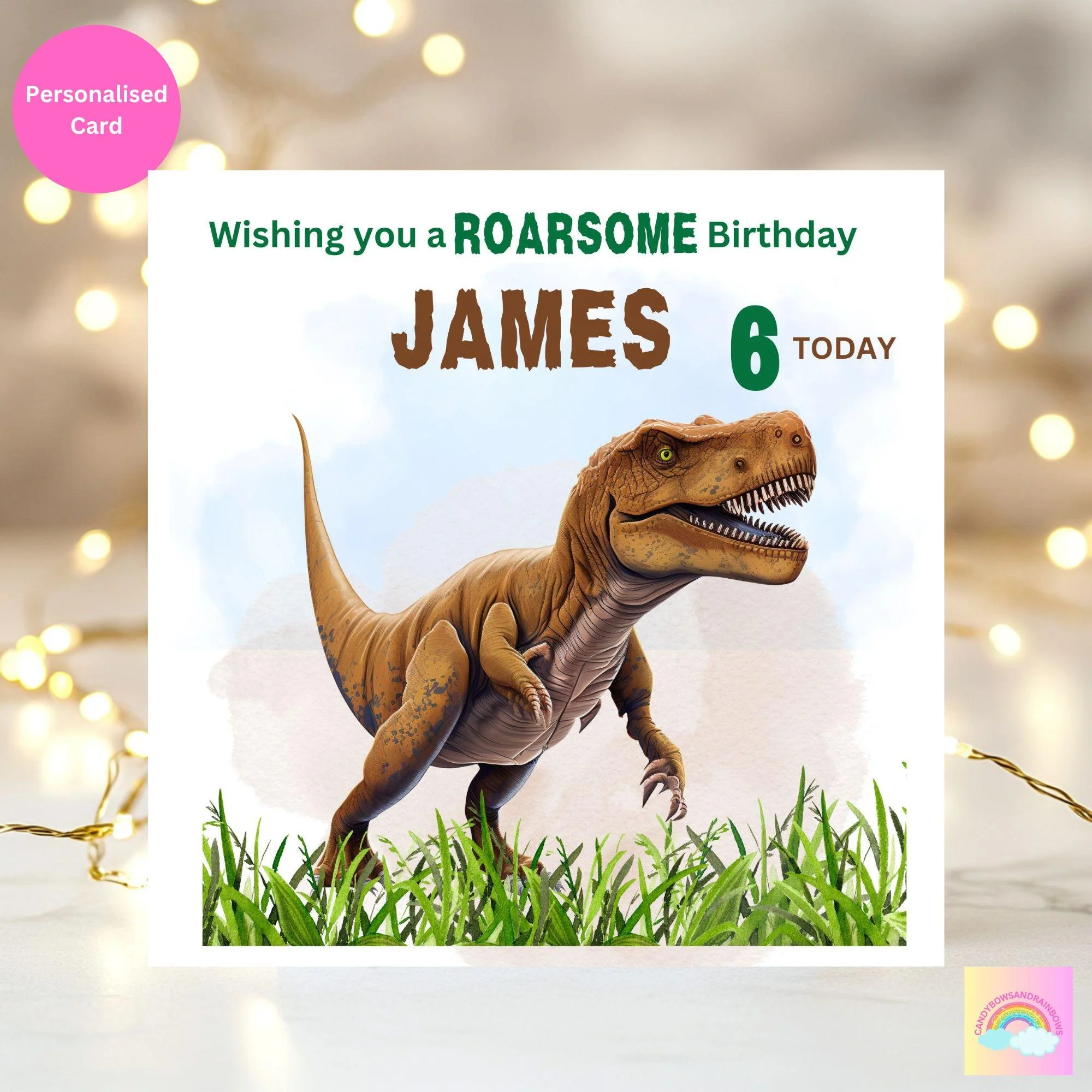 Personalized T-Rex Birthday Card: Roarsome Dinosaur Name & Age