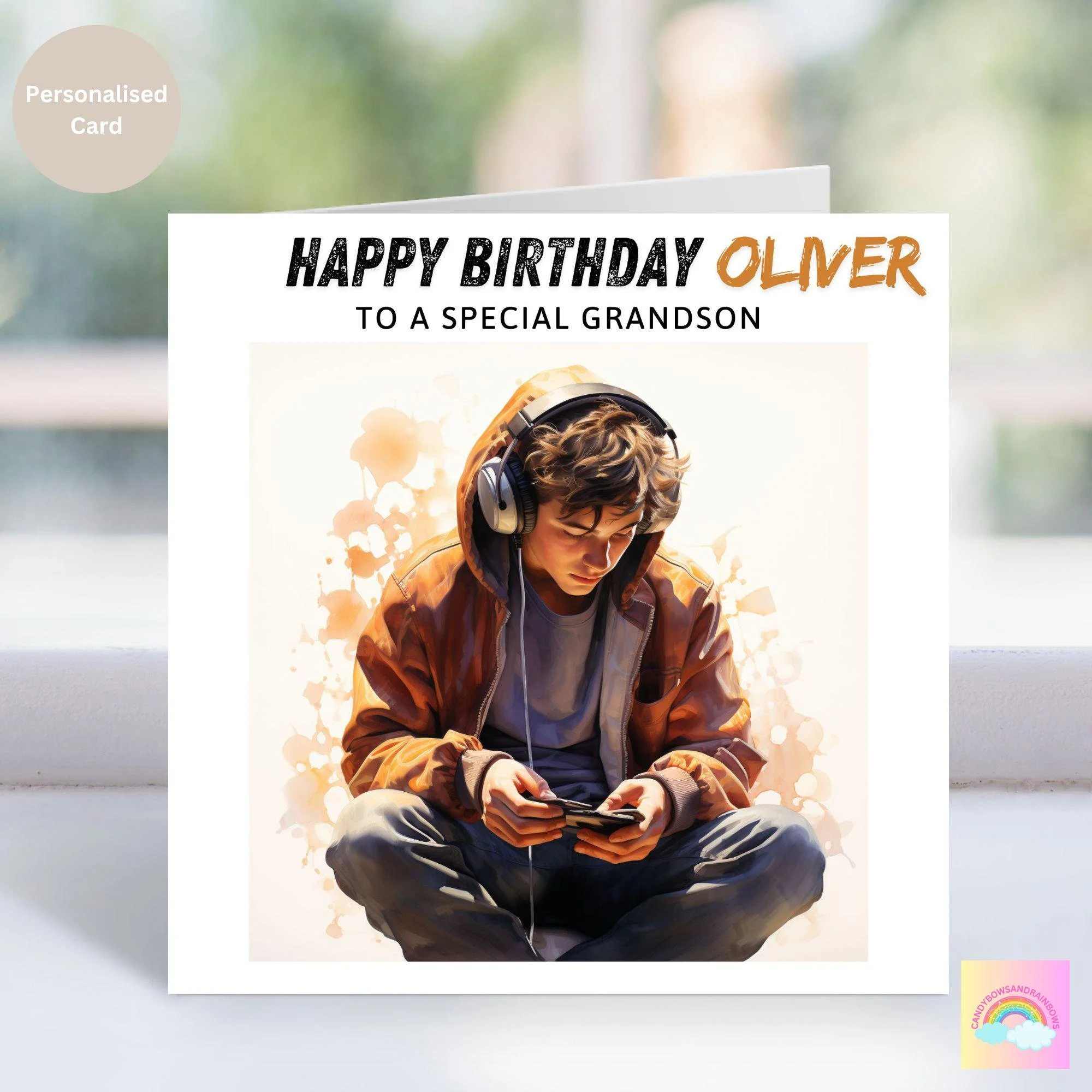 Personalized Teen Boy Birthday Card: Dark Hair, Custom Age & Relation