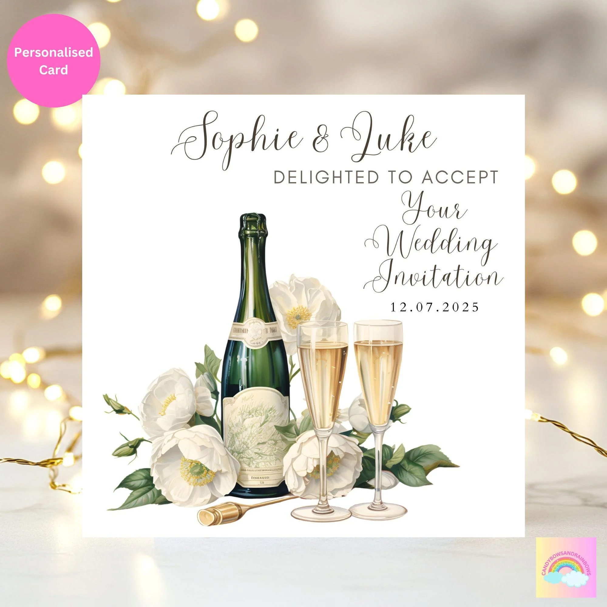 Personalized Wedding RSVP Card: Champagne Flutes, Elegant Acceptance
