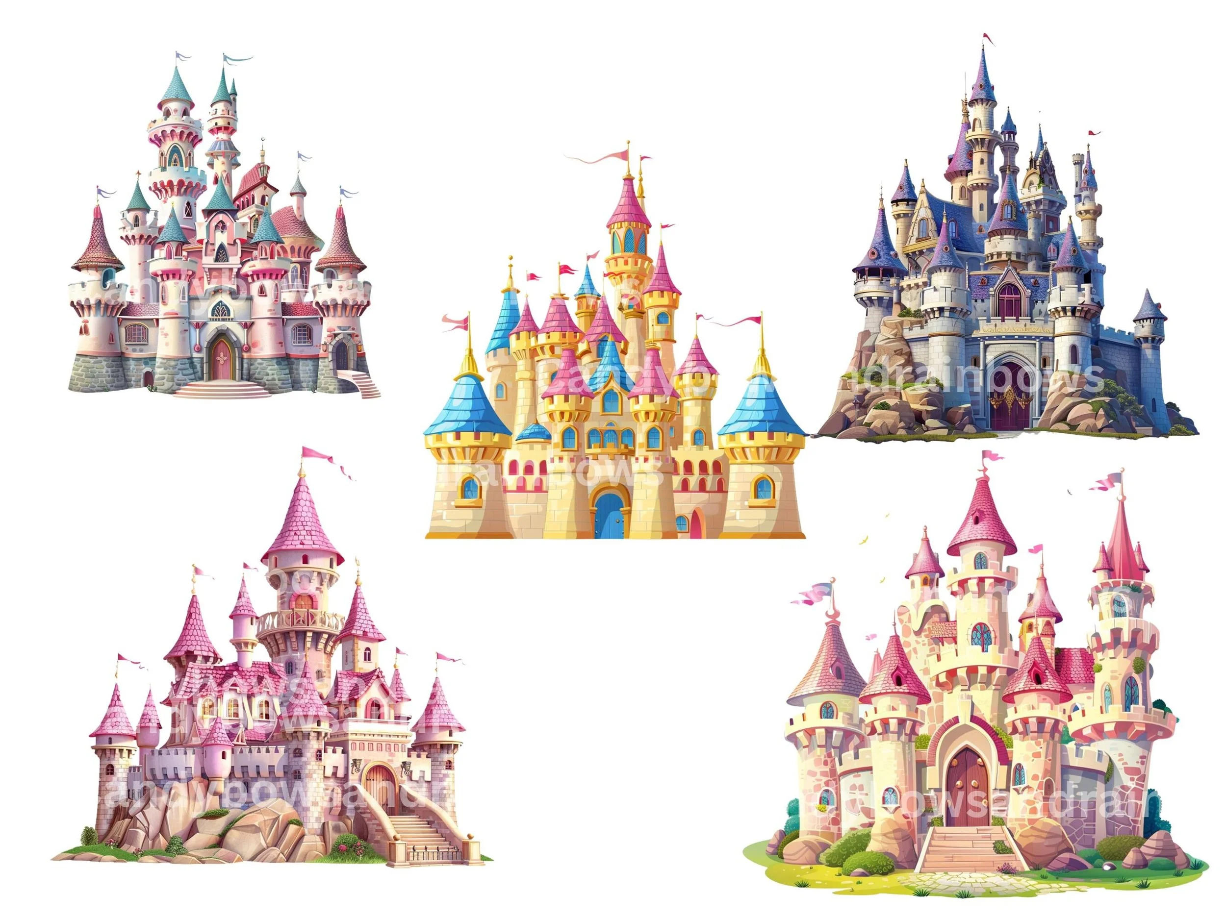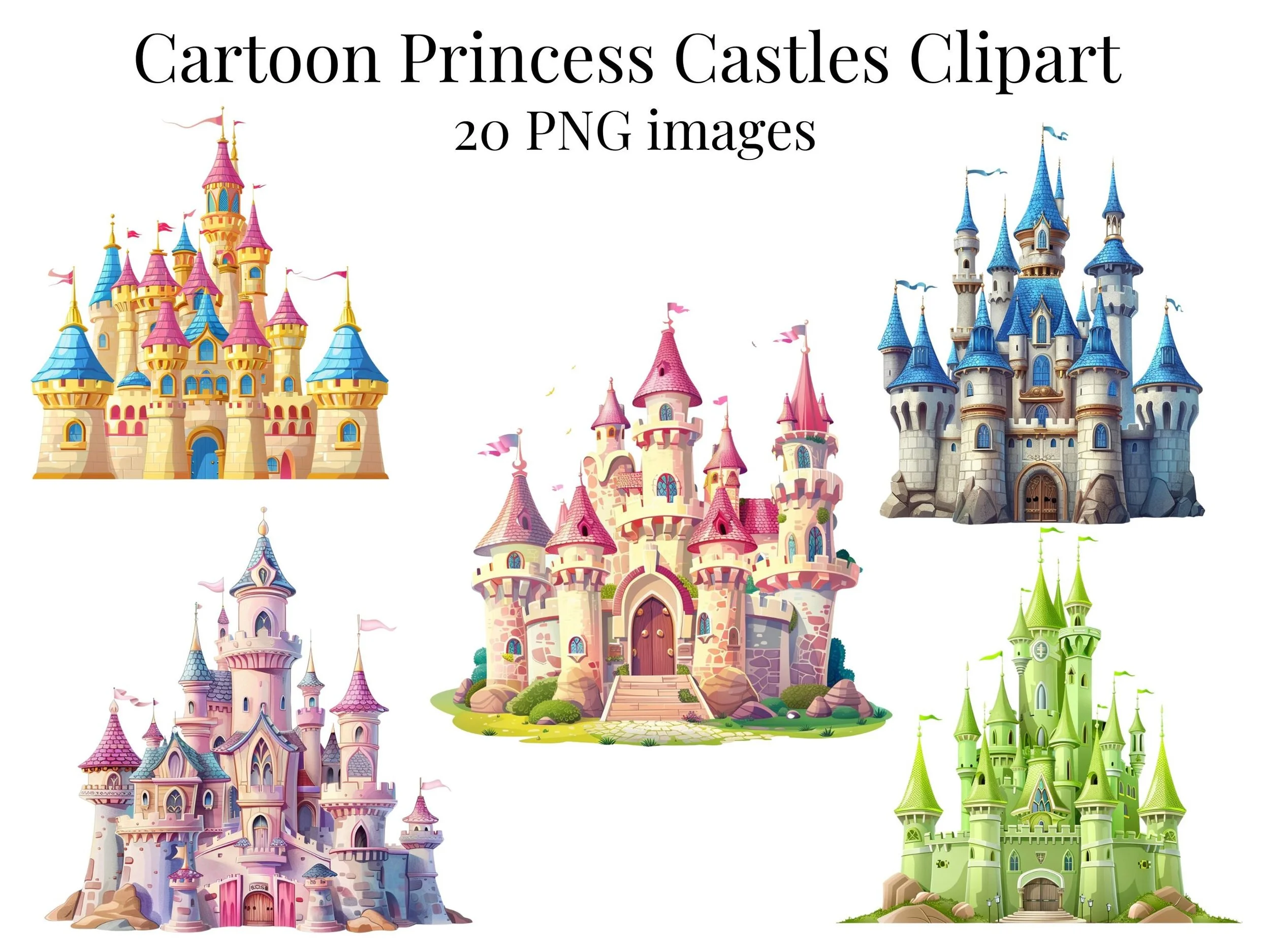 Princess Castles Clipart: 20 PNG Files, Commercial Use